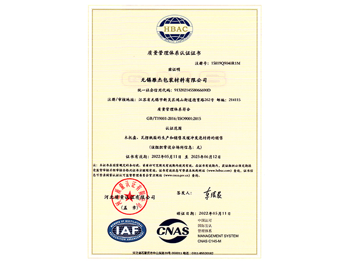 鹽城市君雁包裝科技有限公司,始創于2021年,公司面積20000平方米。公司位于中國鹽城大豐區南陽鎮祥西村三組,是一家集研發、生產、銷售為一體的包裝材料企業,產品涉及:外包裝紙箱,防水紙箱,涂蠟紙箱,浸蠟紙箱,冷柜紙箱,木包裝箱,免熏蒸木包裝箱,木托盤,EPE珍珠棉,珍珠棉袋,EVA板材,EVA大板,包裝海綿等包裝材料。包裝設計制造符合API、ANSI、ASTM、NACE、ISO、EN、BS、DIN、MSS SP等國際標準的要求,在鹽城以及周邊城市的市場上有良好的評價。公司擁有先進的生產設備,嚴格的管理制度和高素質的人才團隊,保證了高質量的產品和良好的服務,同時我司還可以根據客戶特殊工況需求,提供全套包裝技術解決方案。